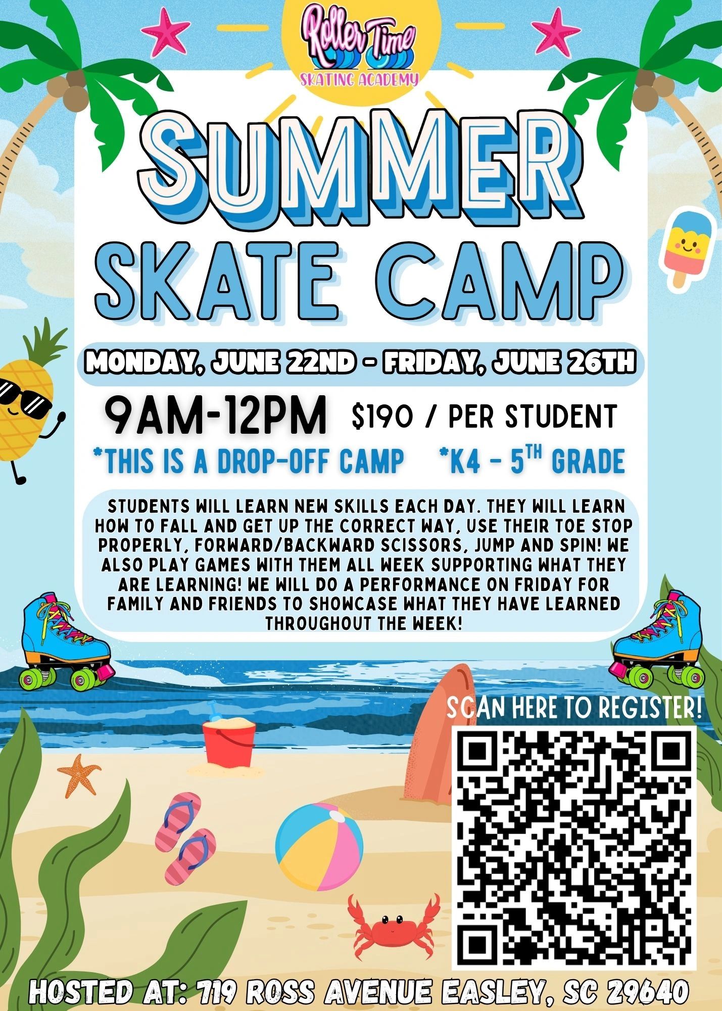 Roller Time Skating Academy's main goal is to create a fun, safe, and positive learning environment where children ages 3 all the way to adults can learn how to roller skate or just improve their skills under the guidance of one of our certified instructors. Our classes range from beginners to advanced levels. We also offer camps, group lessons, and private lessons.
